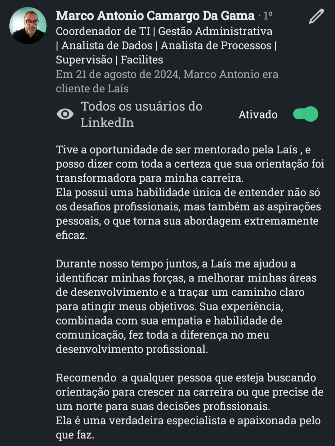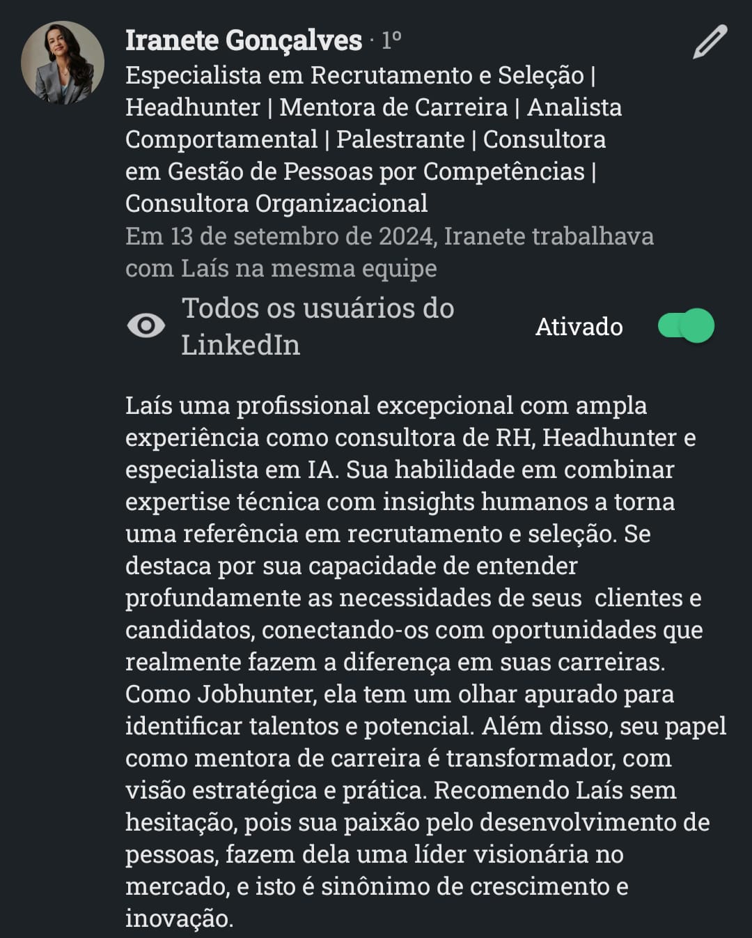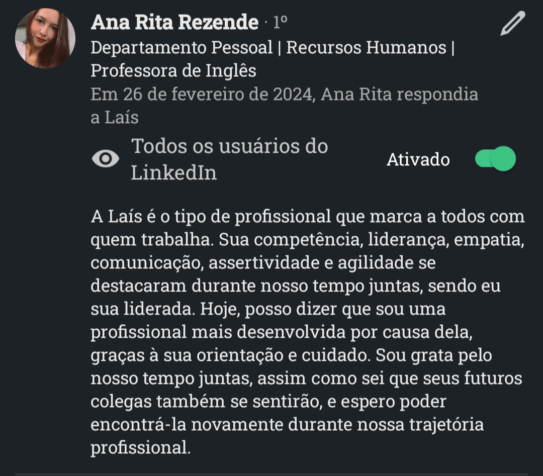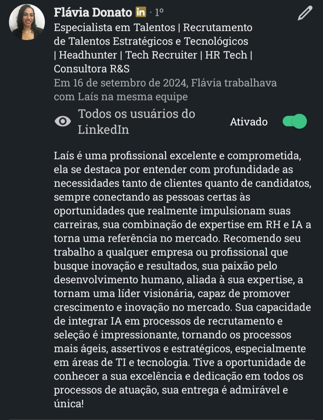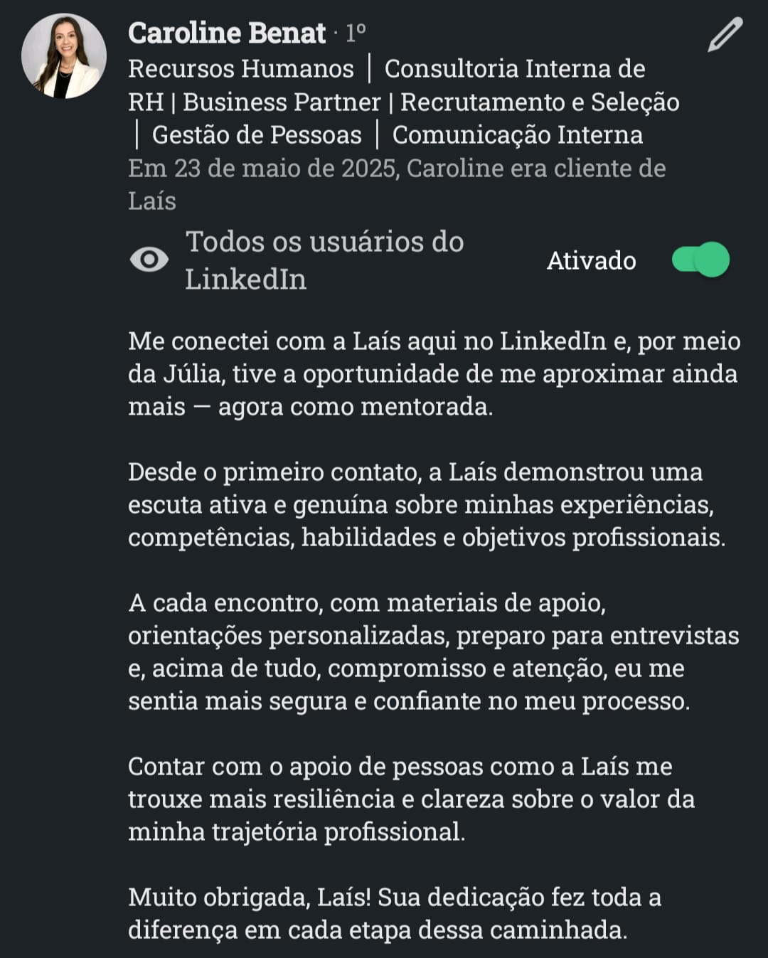 Com atuação em Recrutamento & Seleção por Competências, mentoria de carreiras, treinamentos corporativos e aplicação de IA no RH.